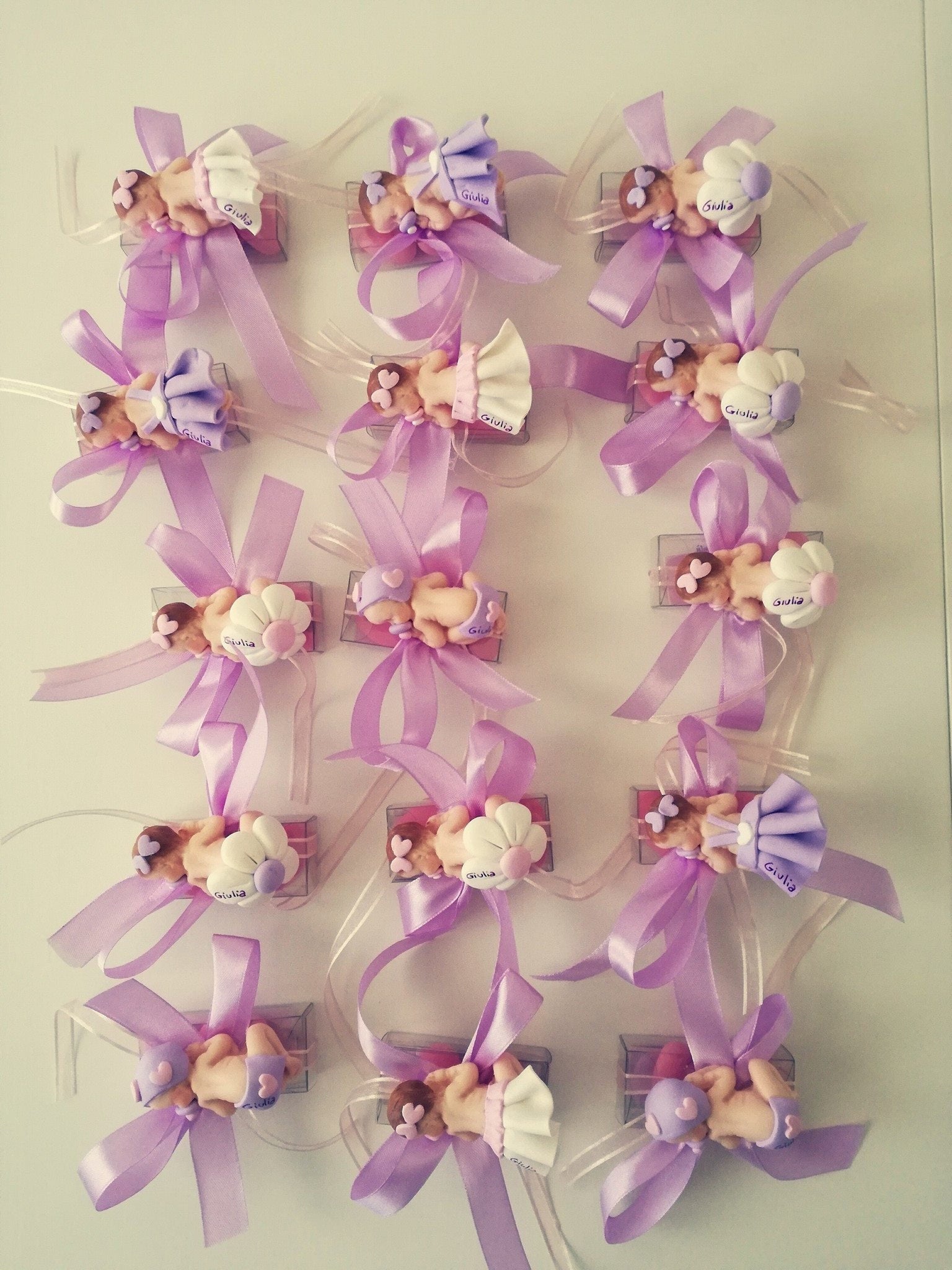 BABY GIRLS IN FIMO with Margherita Rosa and Lilla, birth, baptism, sugared almond favors