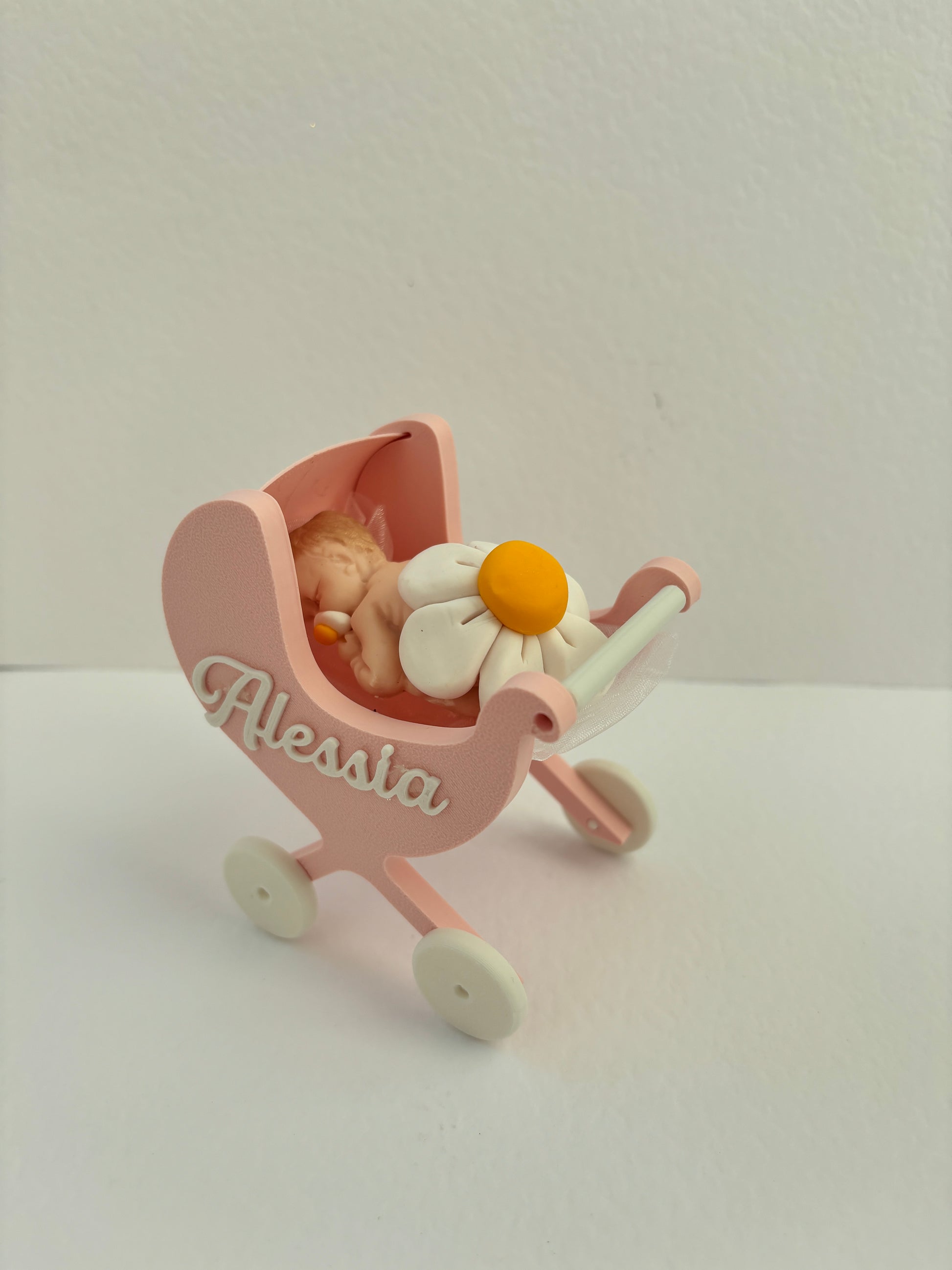 Baptism favor for girls/baby in pink or light blue fimo in the pram