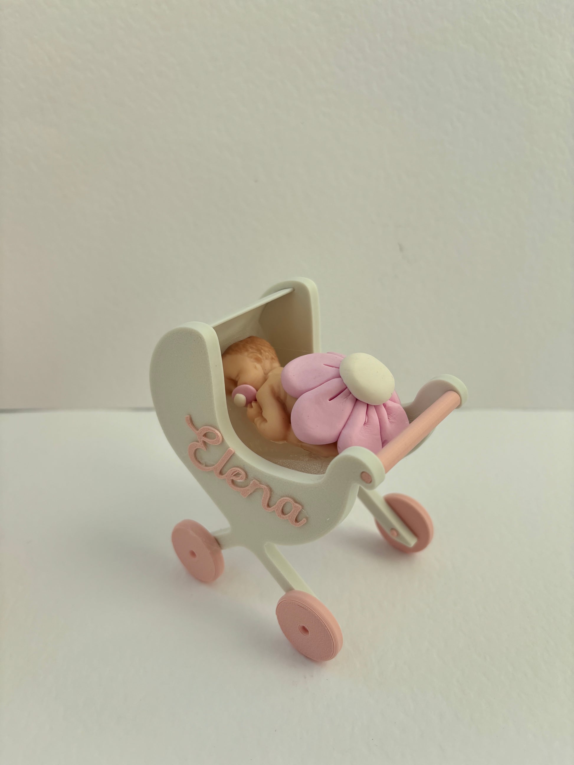 When ordering, you can indicate the color you prefer for the baby, the stroller and the name applied.