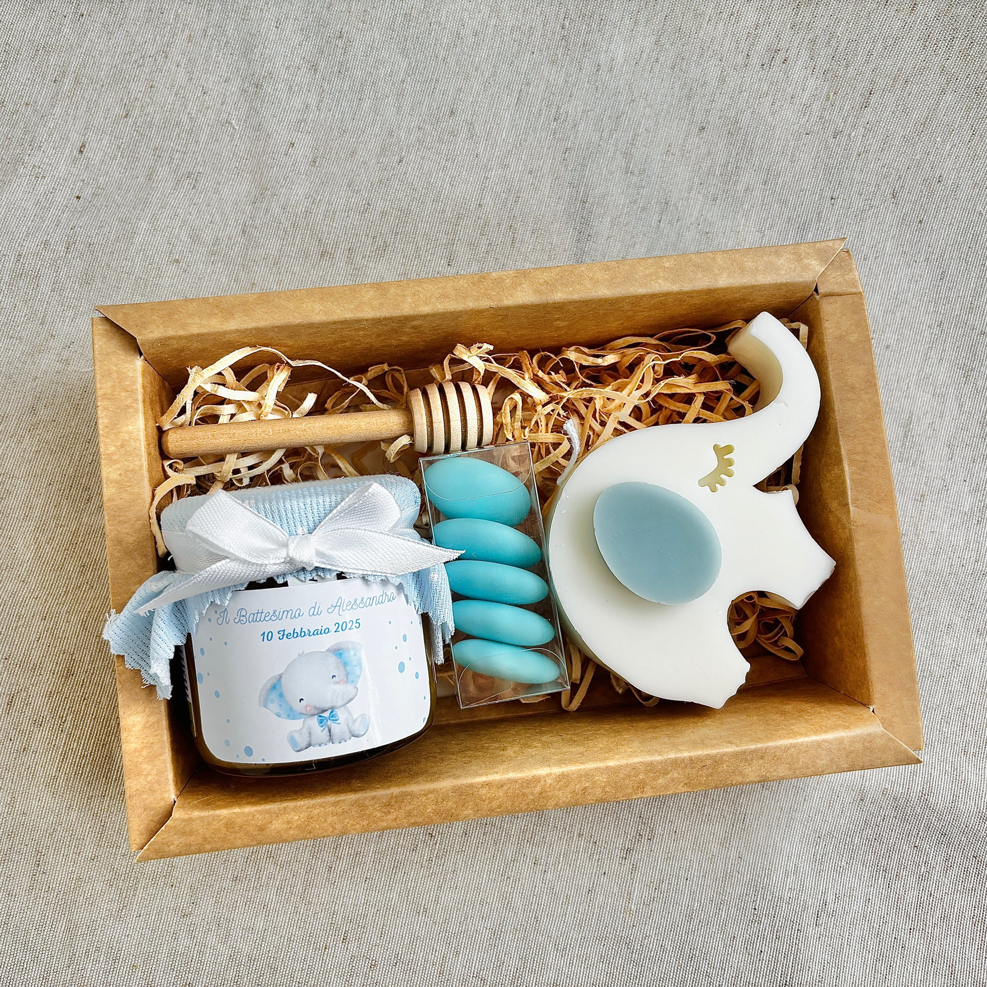 Baptism favor Little Prince themed box with 140g honey and scented cloud candle or essence burning wafers