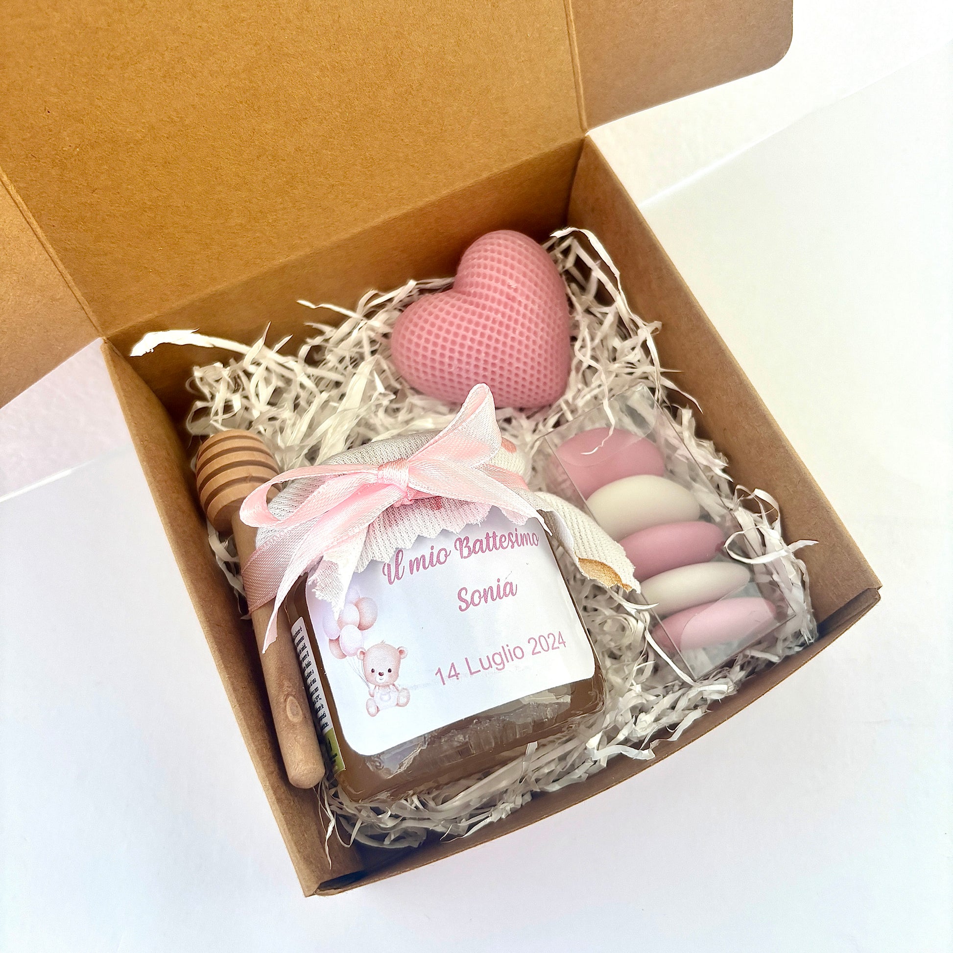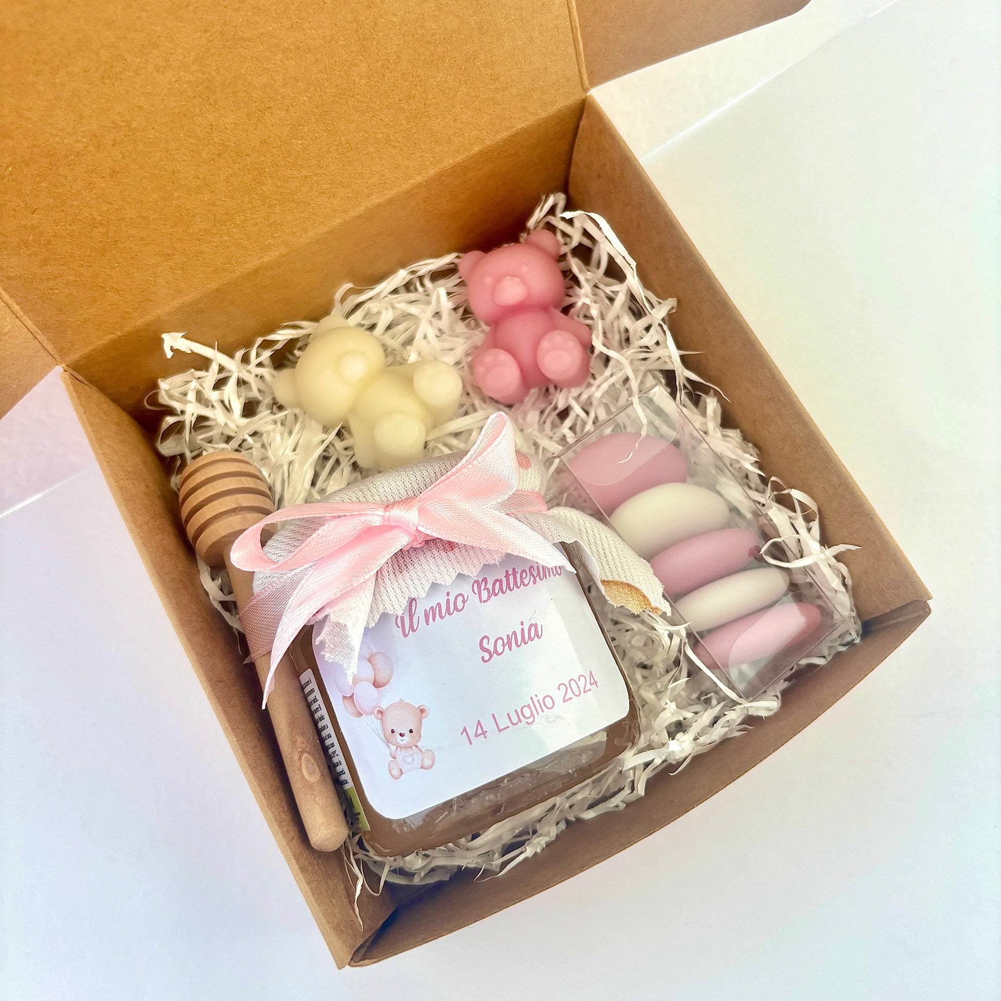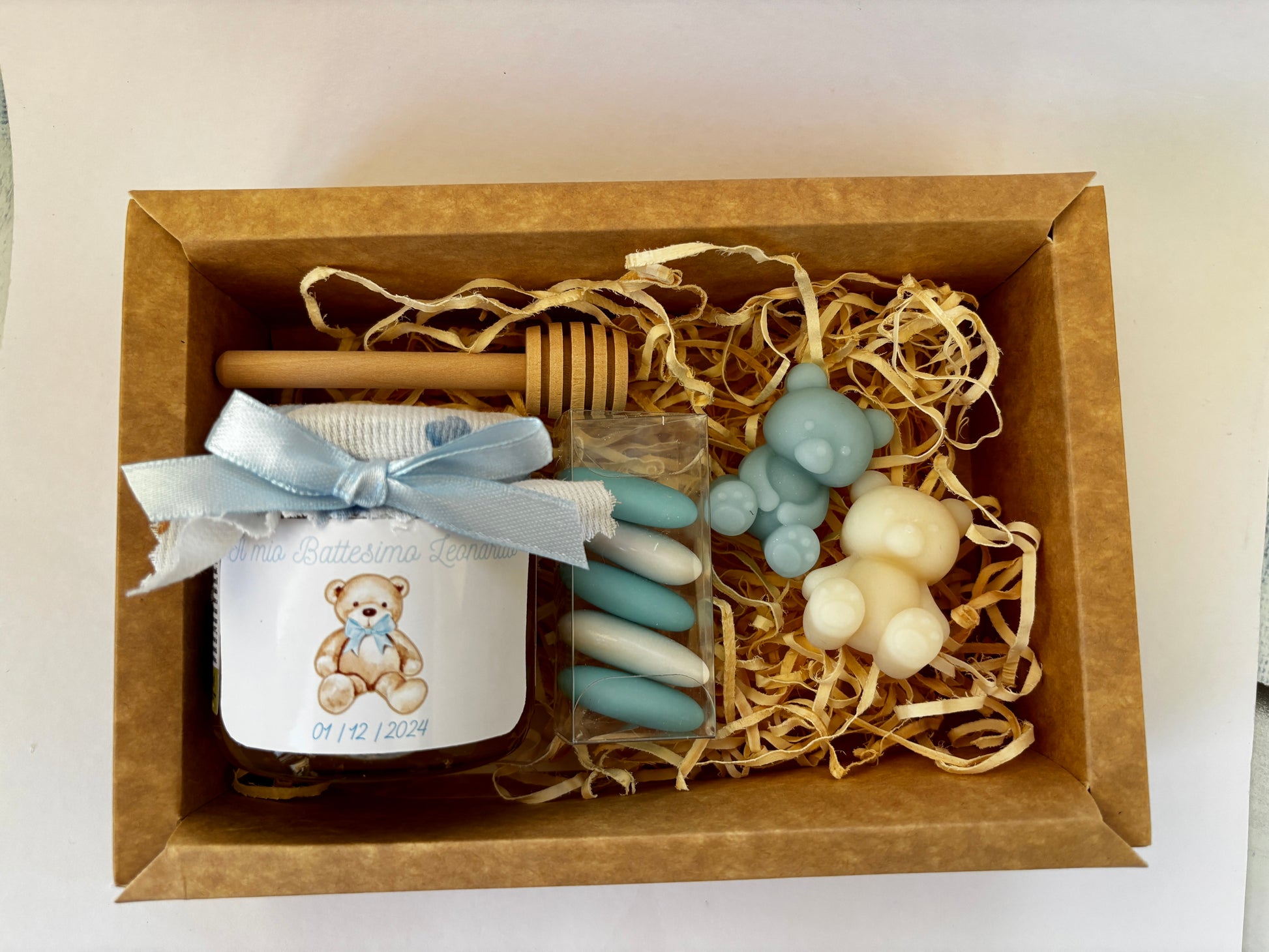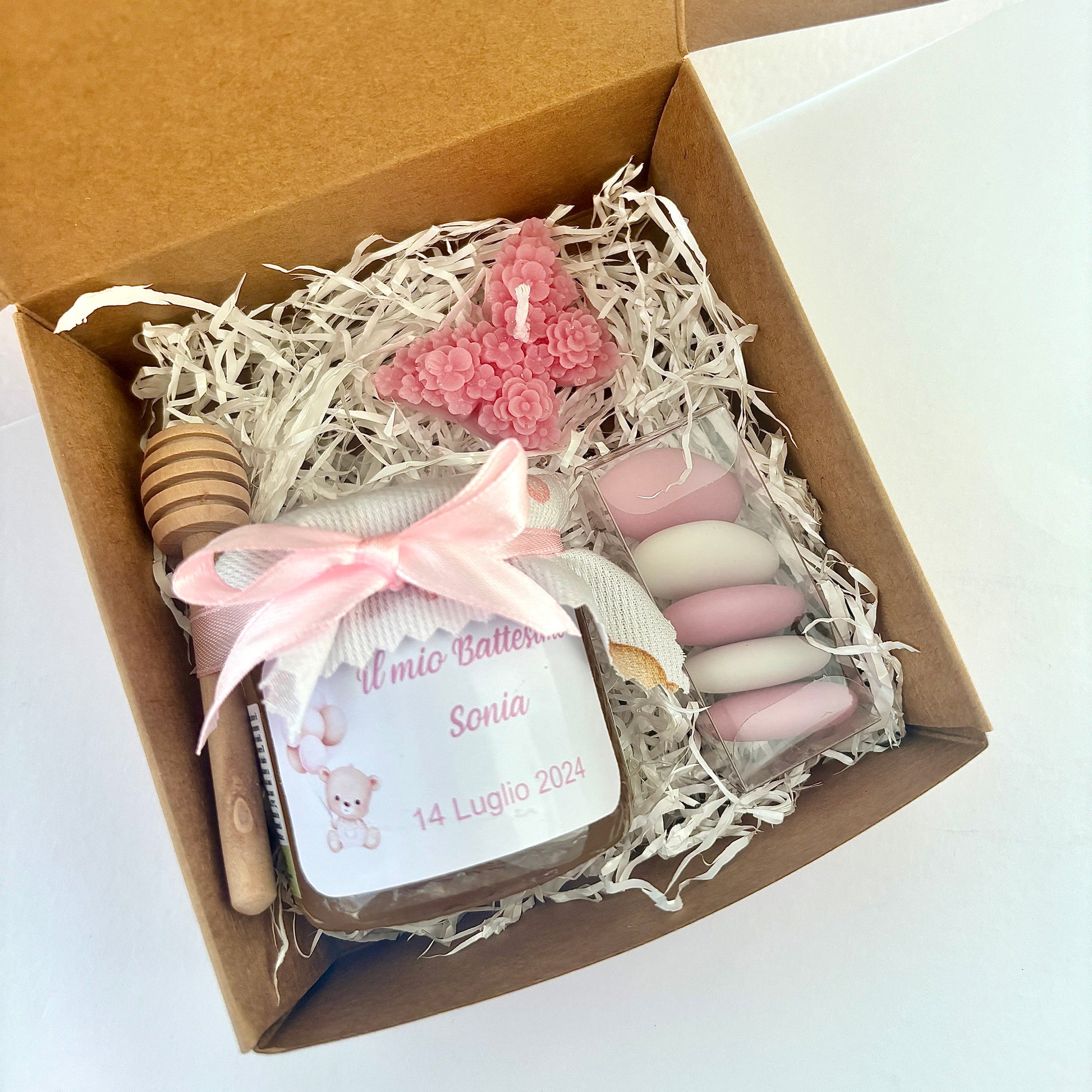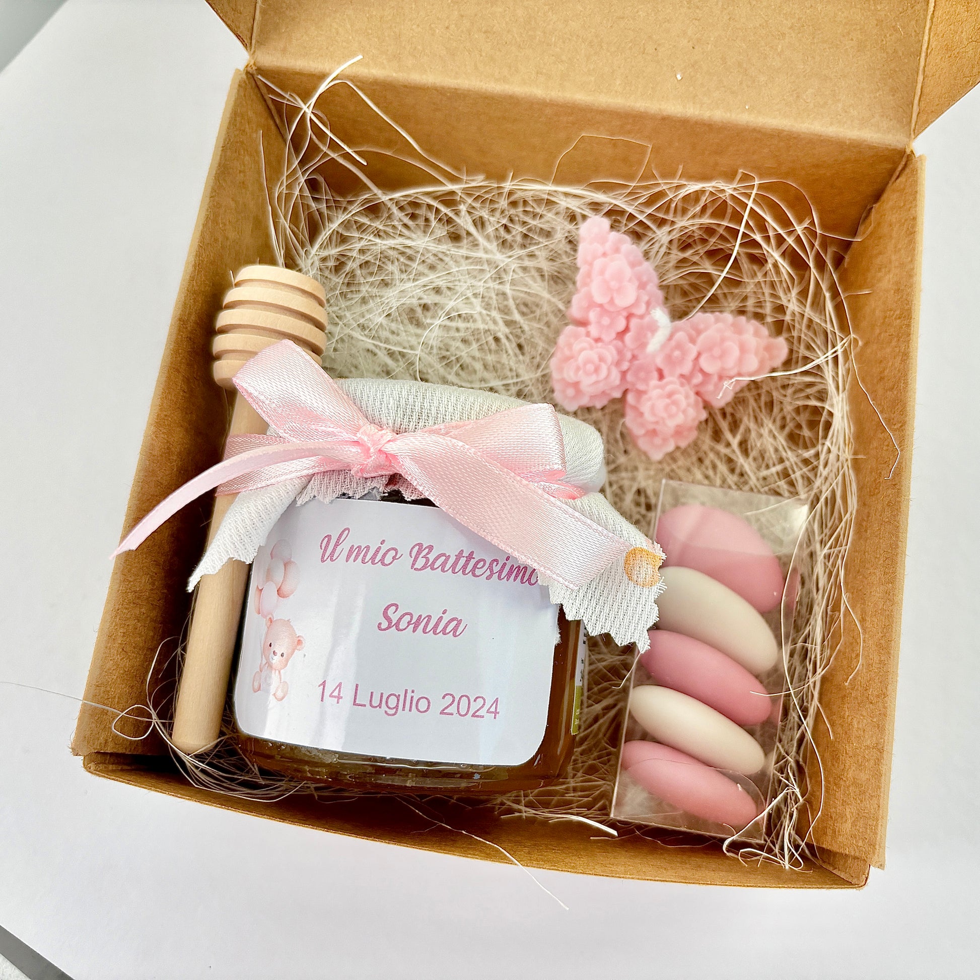 Baptism favor box with 140 gr honey and scented butterfly candle