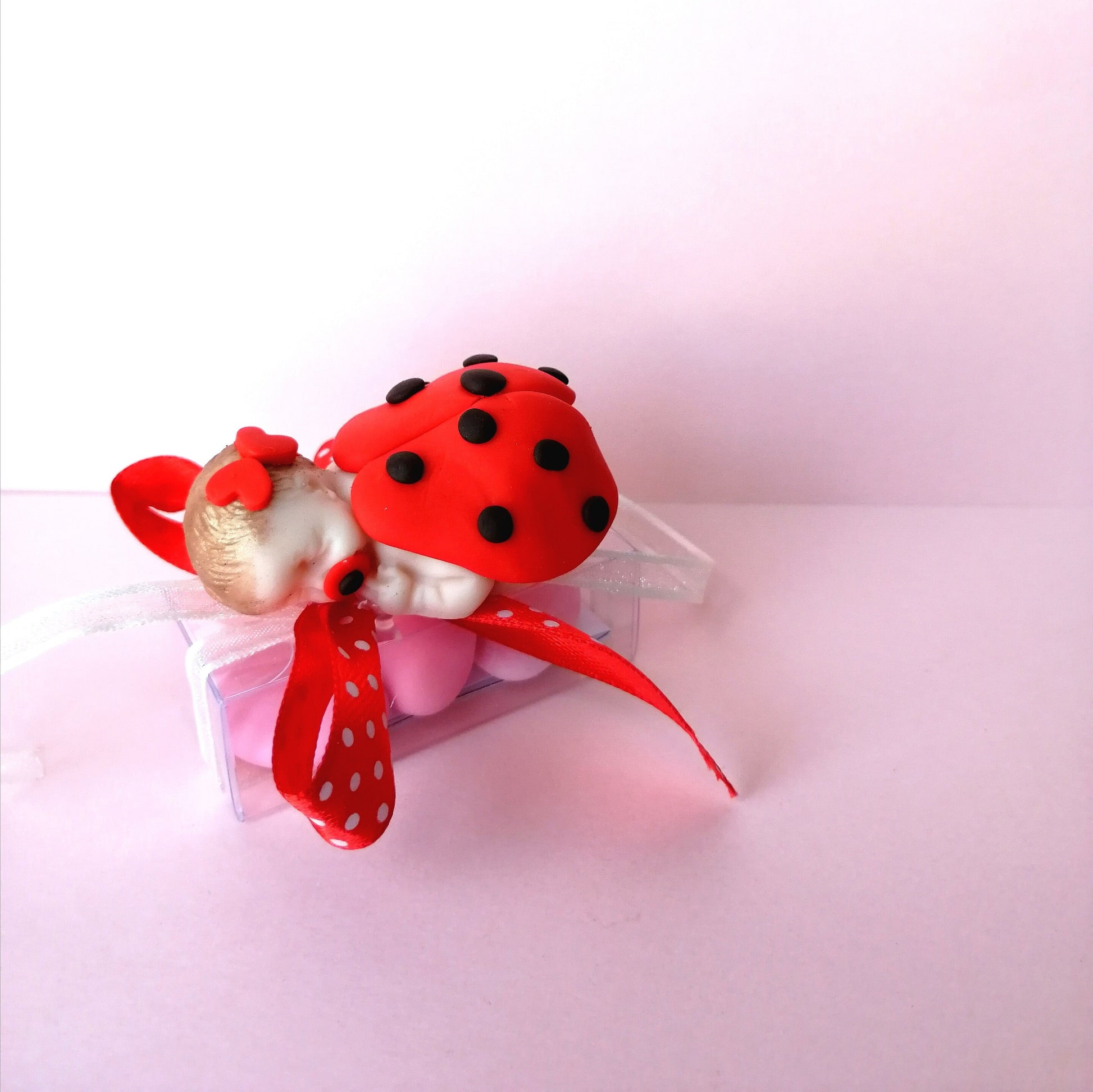 Handmade favor for birth, baptism, baby girl with original flower, ladybug, sunflower, daisy