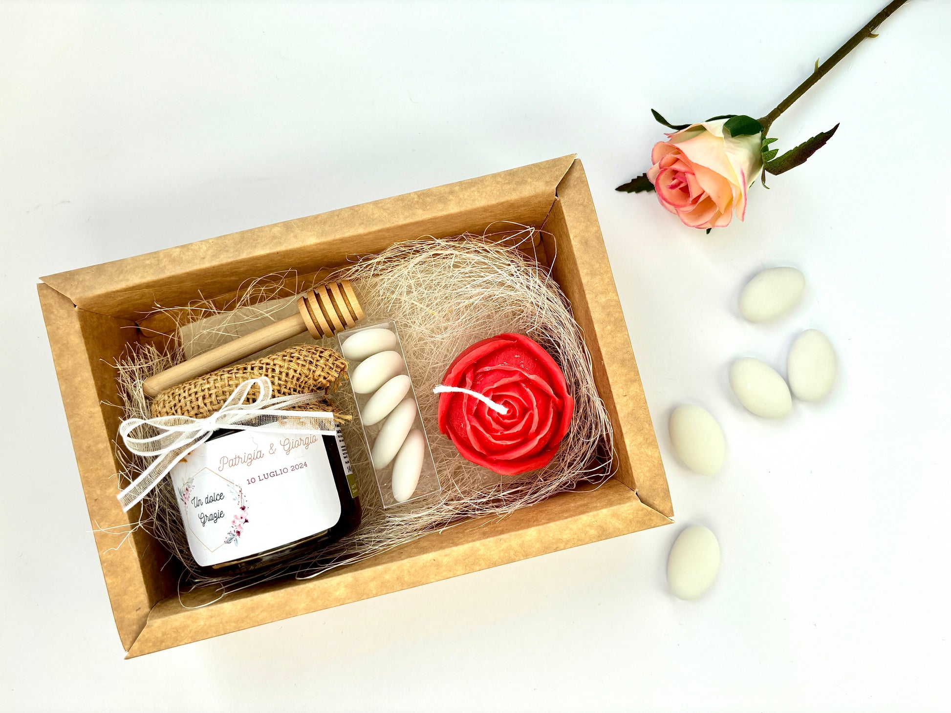 Wedding Favor Box with Honey 140 gr and Scented Candle