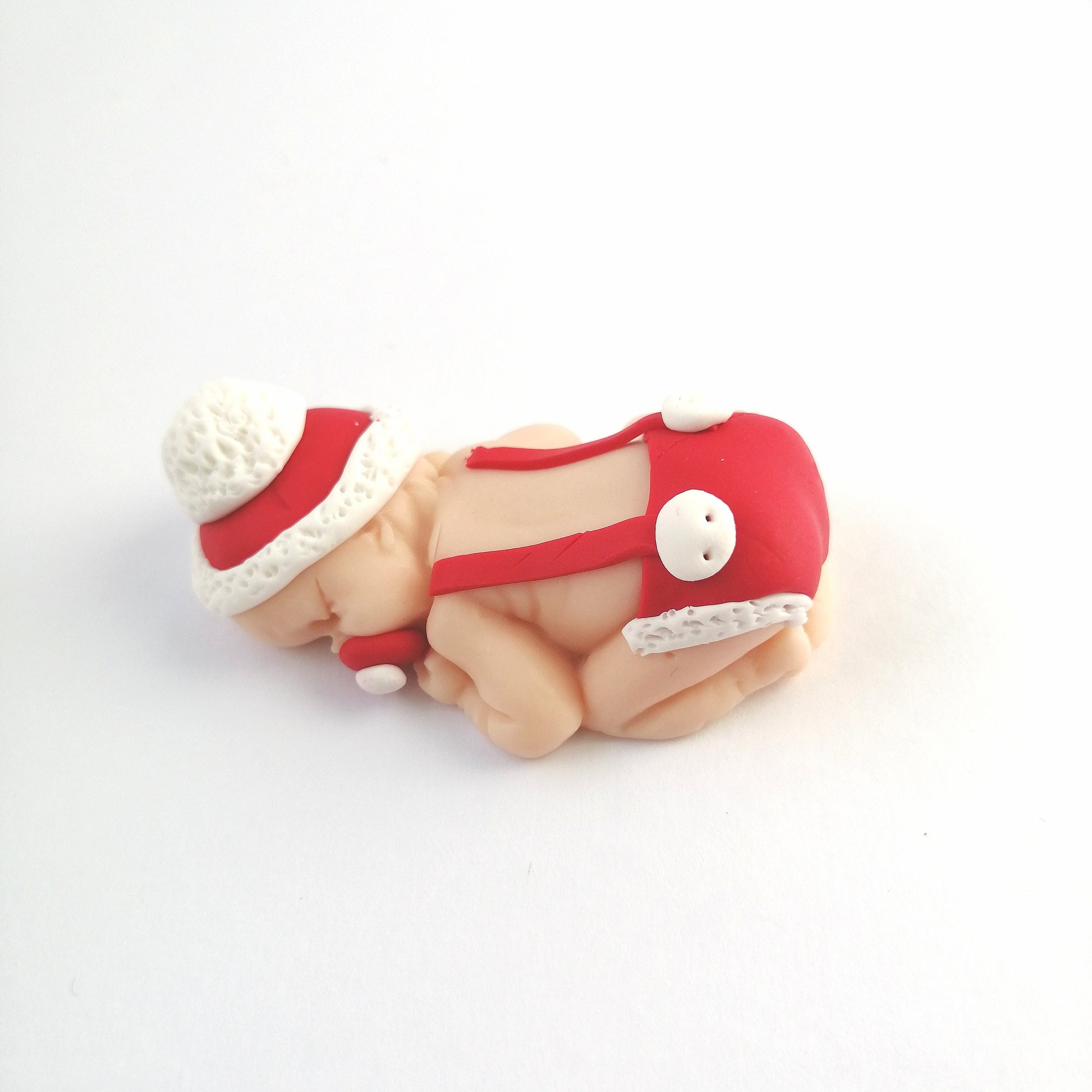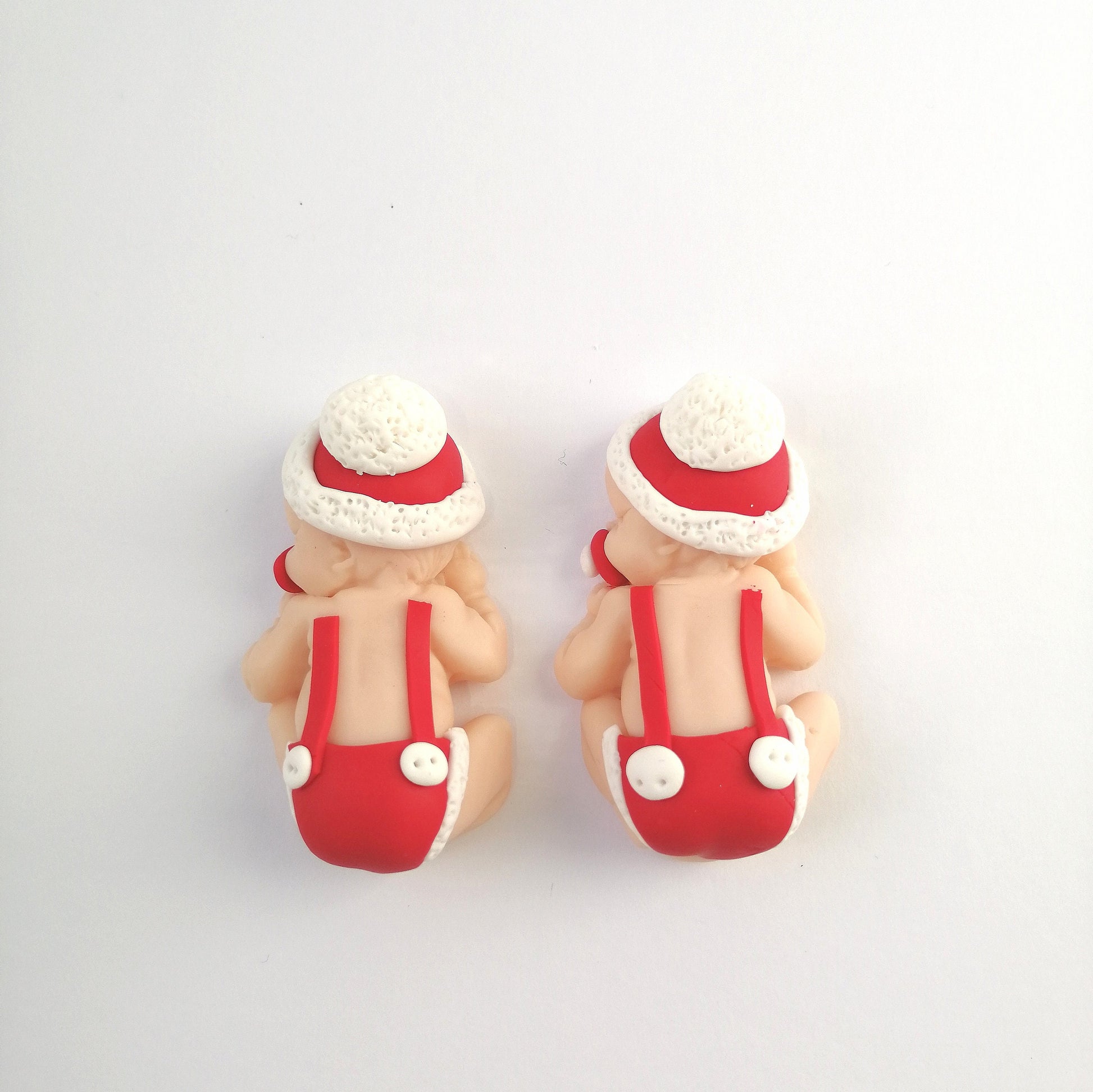 Fimo babies handmade in fimo with Santa Claus hat and overalls, ideal for occasions such as Birth, Baptism and various decorations.