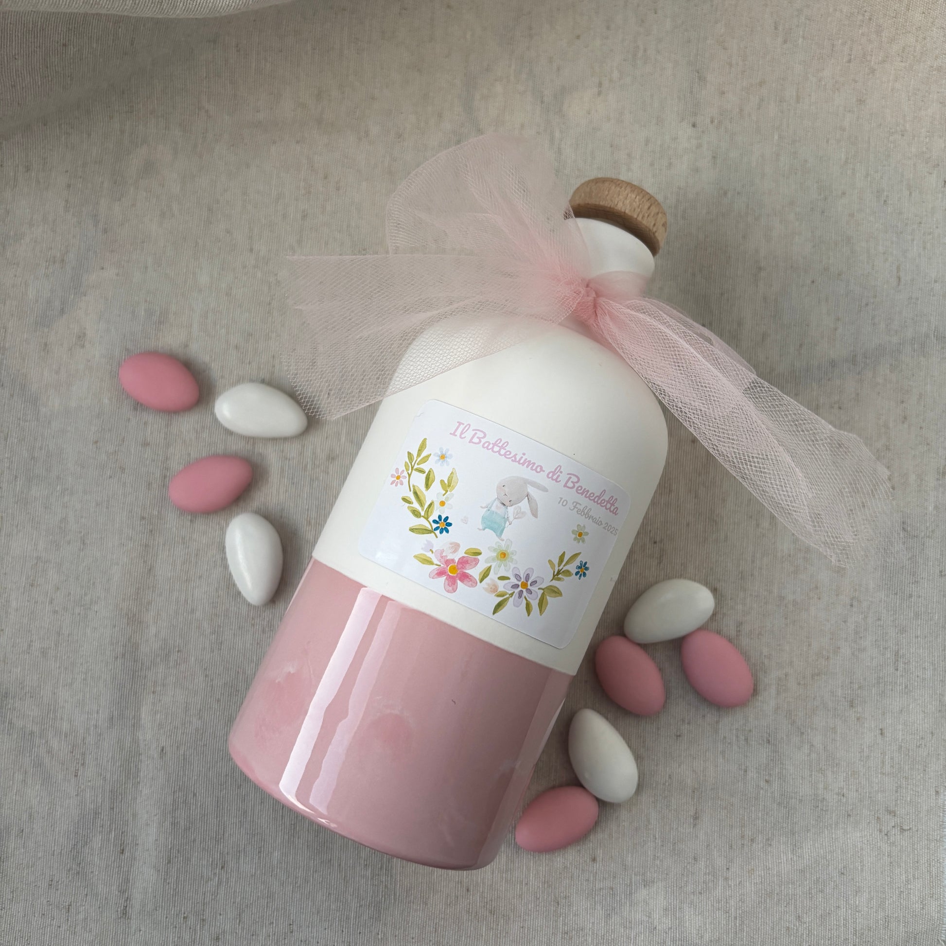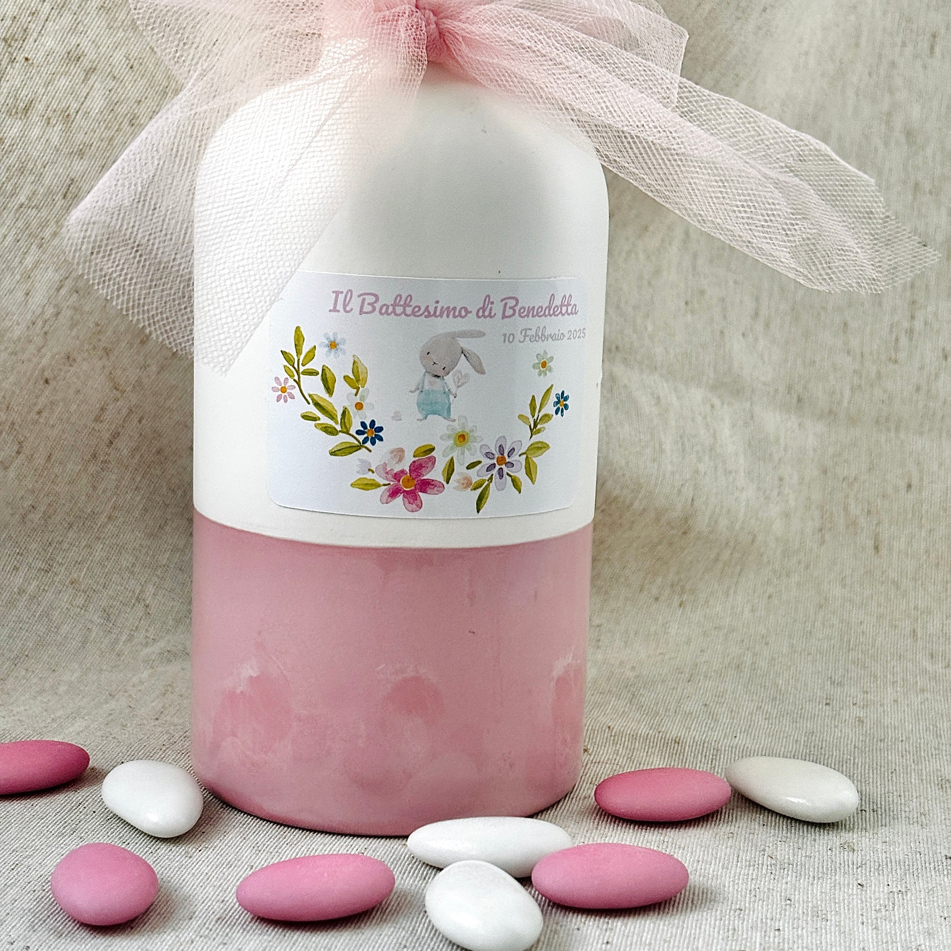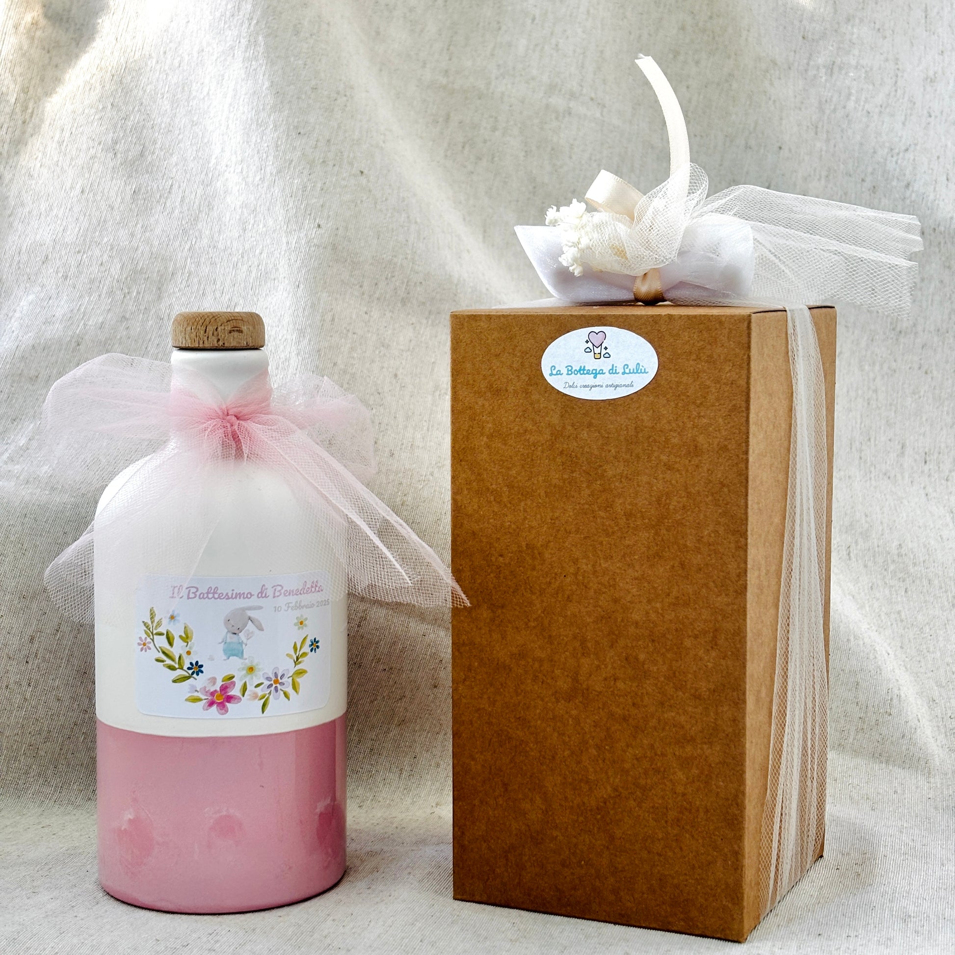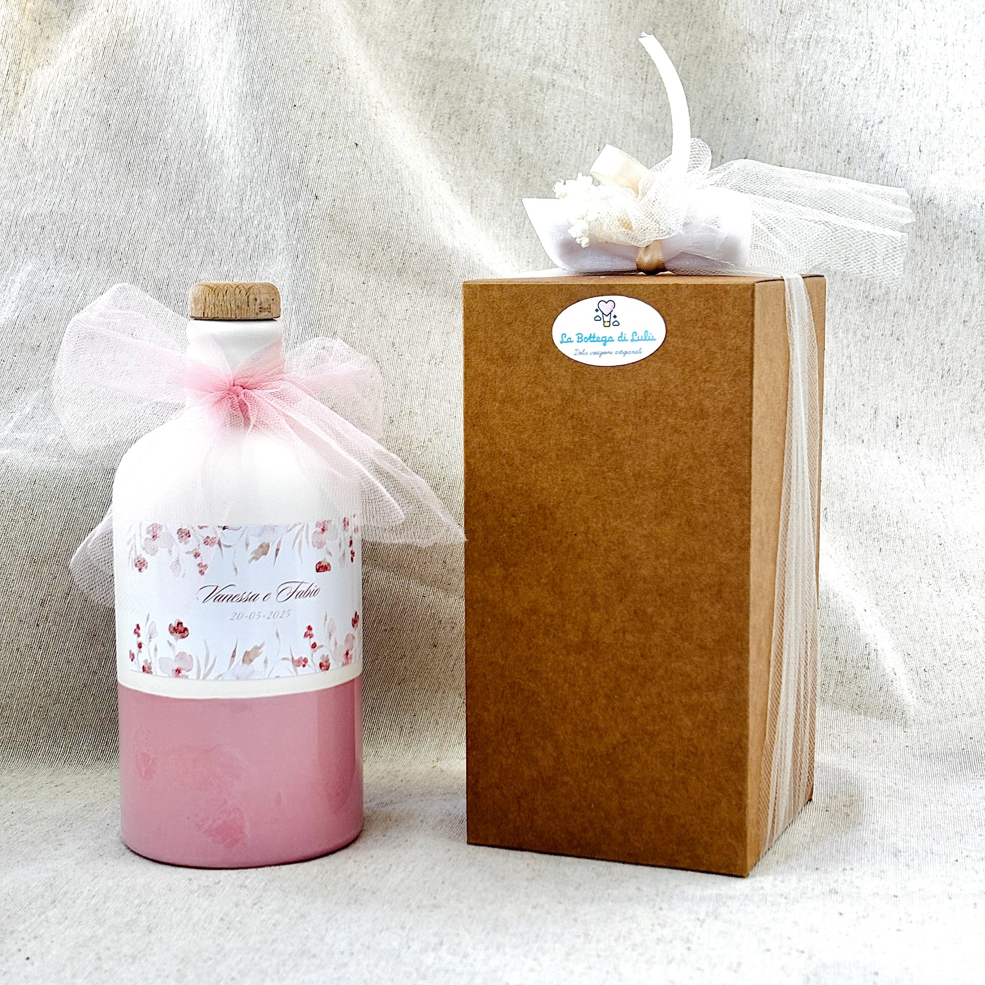 When purchasing, indicate precisely what you want to write on the label to be applied to the jar and what you want to engrave on the external box, the color of the chosen fabric, the color of the ribbon and confetti.