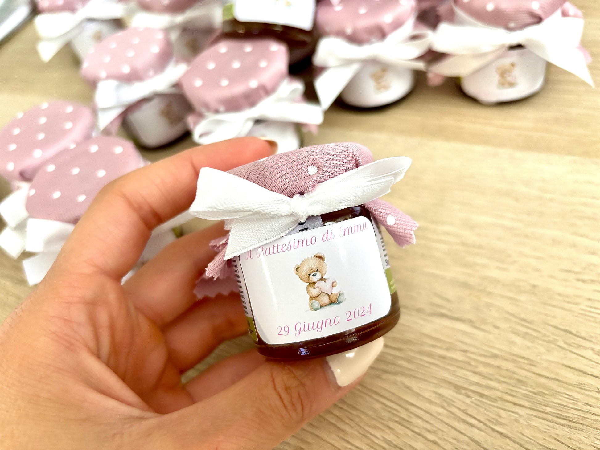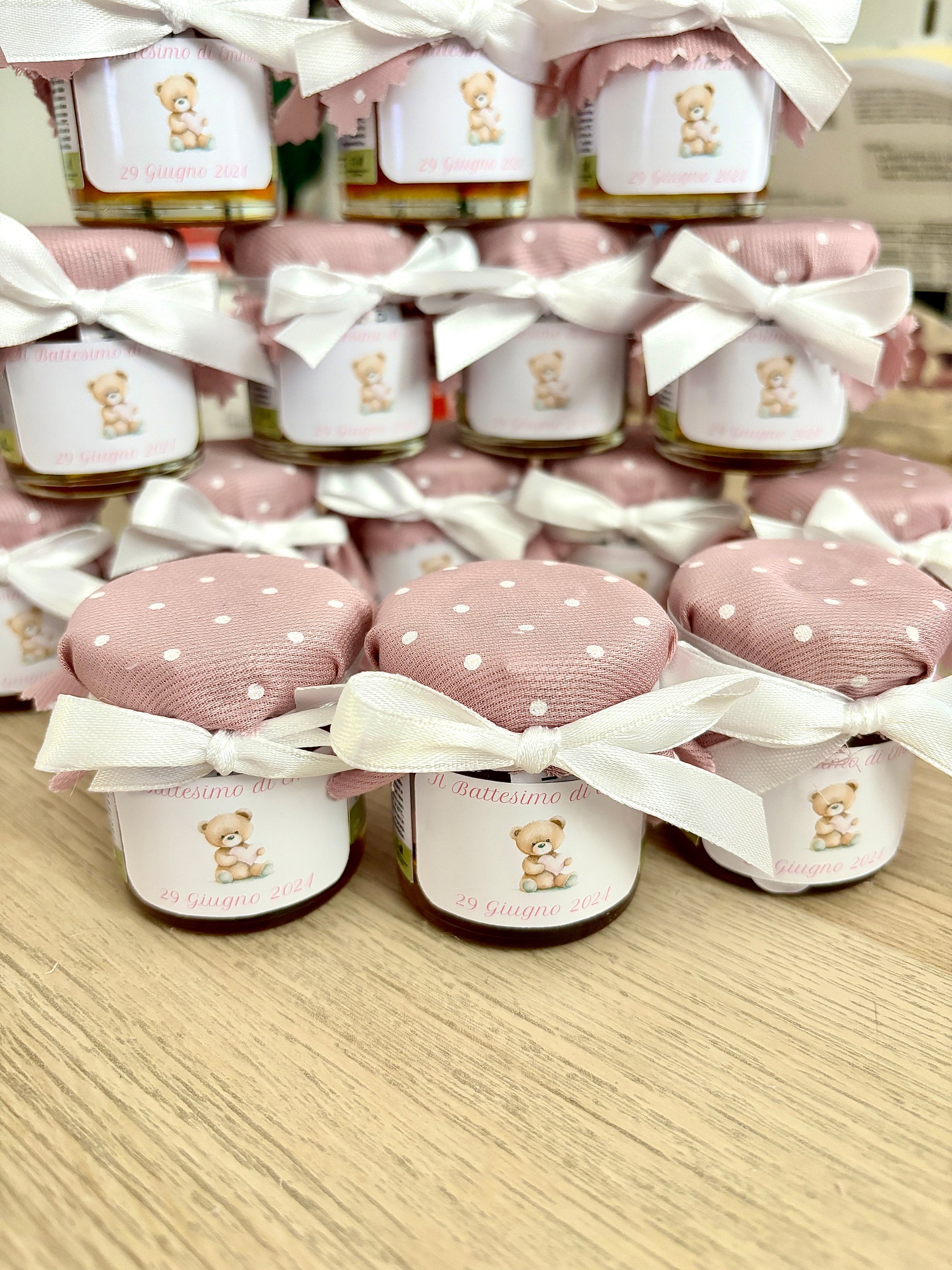 Baptism Favors for Girls Jar of artisanal wildflower honey 50gr -140gr- 250gr with a teddy bear theme