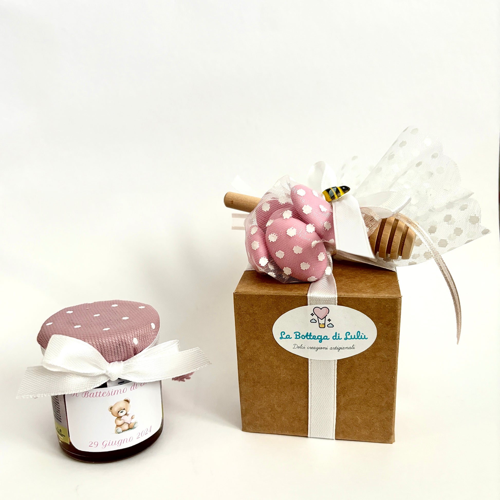 2) JAR WITH BOX (the package is complete and the jar will be inside the box, outside there will be the sugared almonds and the honey dipper).