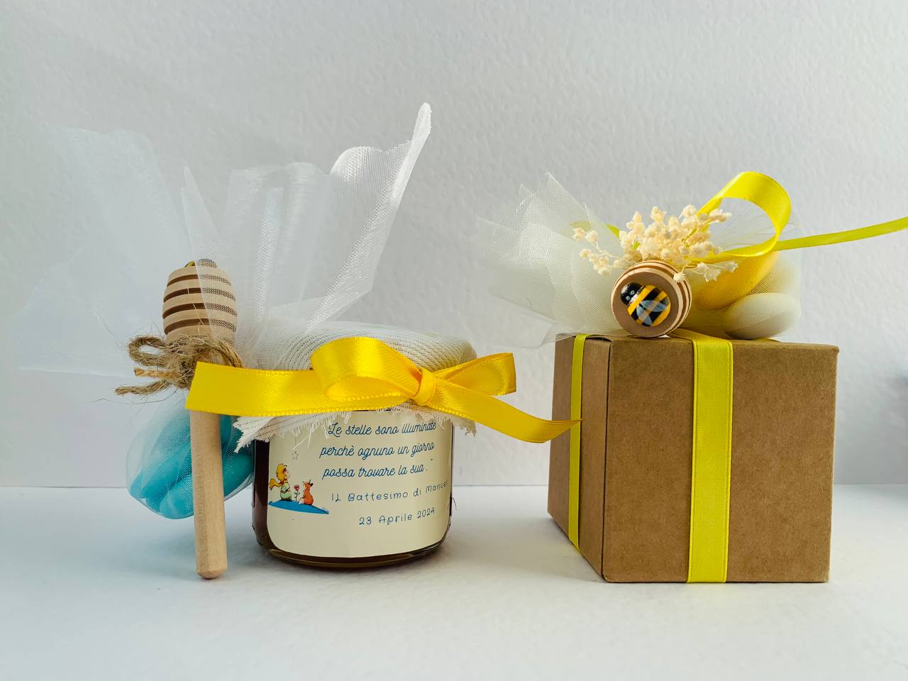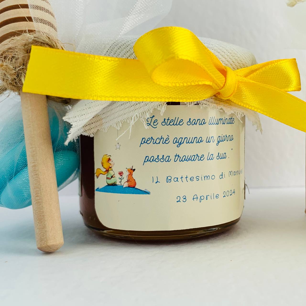 Baptism favors for baby boy LITTLE PRINCE Jar of artisanal wildflower honey 140gr- 250gr, customizable yellow label