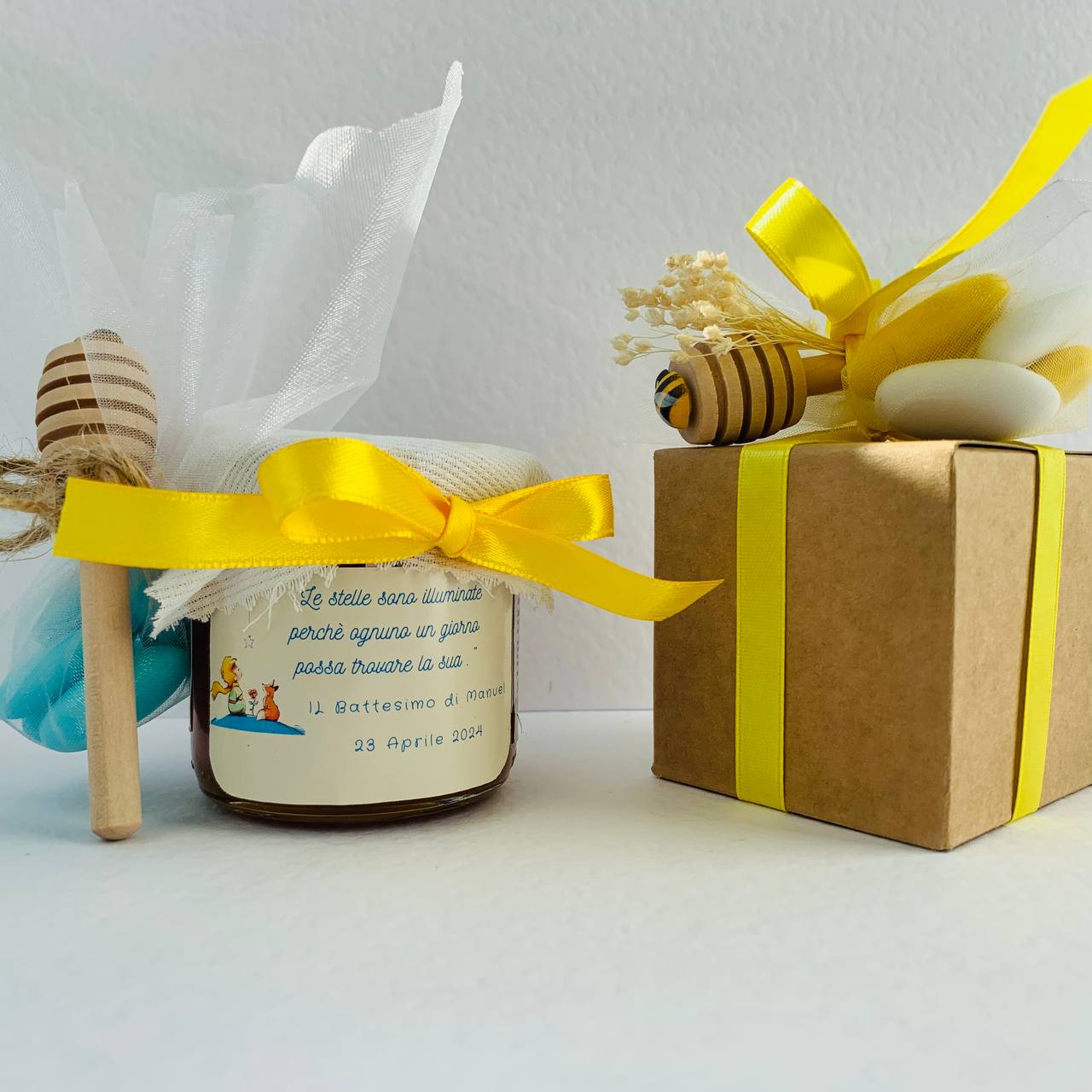 2) JAR WITH BOX (the package is complete and the jar will be inside the box, outside there will be the sugared almonds and the honey dipper).