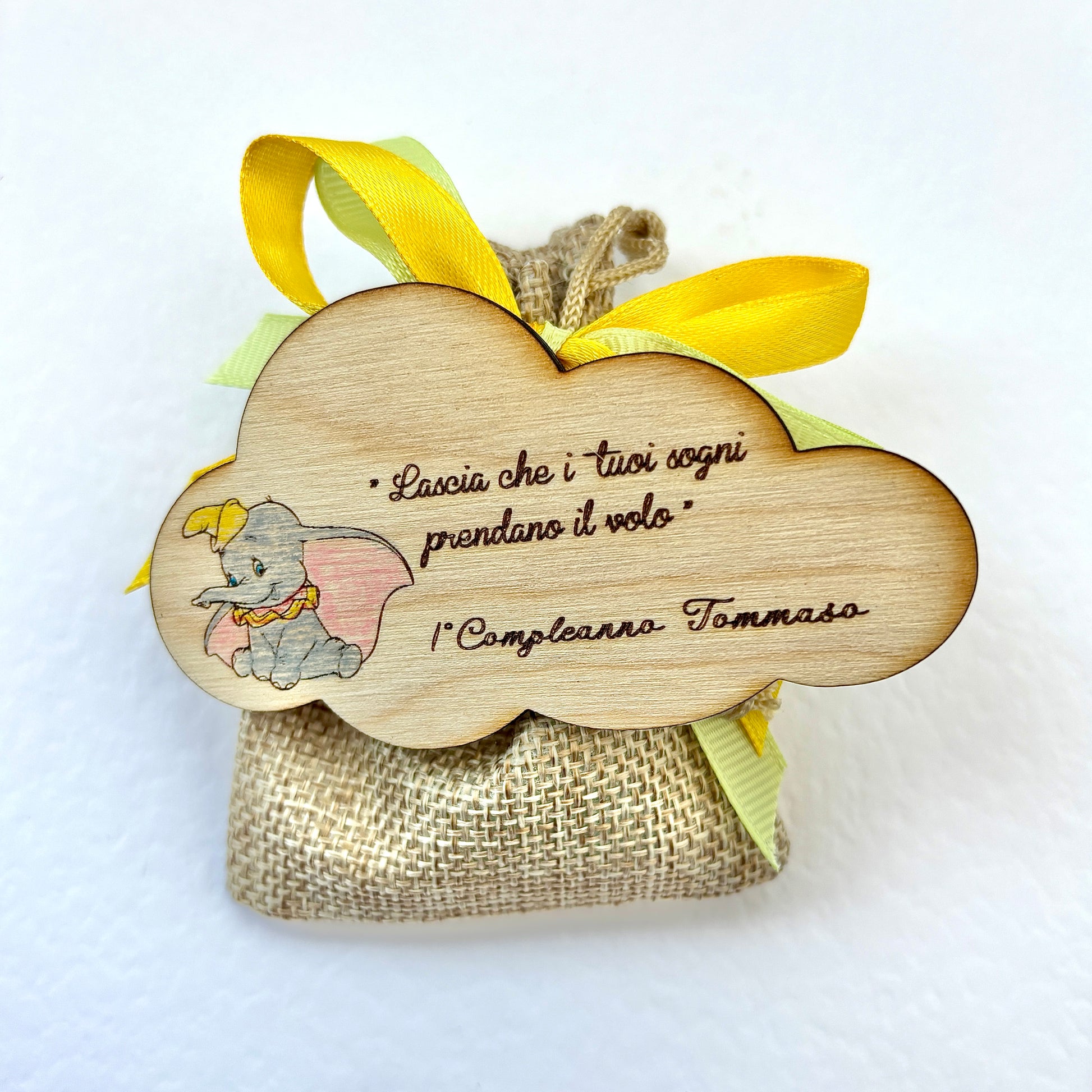 Wooden magnet Little Prince, customizable favor for baptism and birth, light blue sugared almond bag