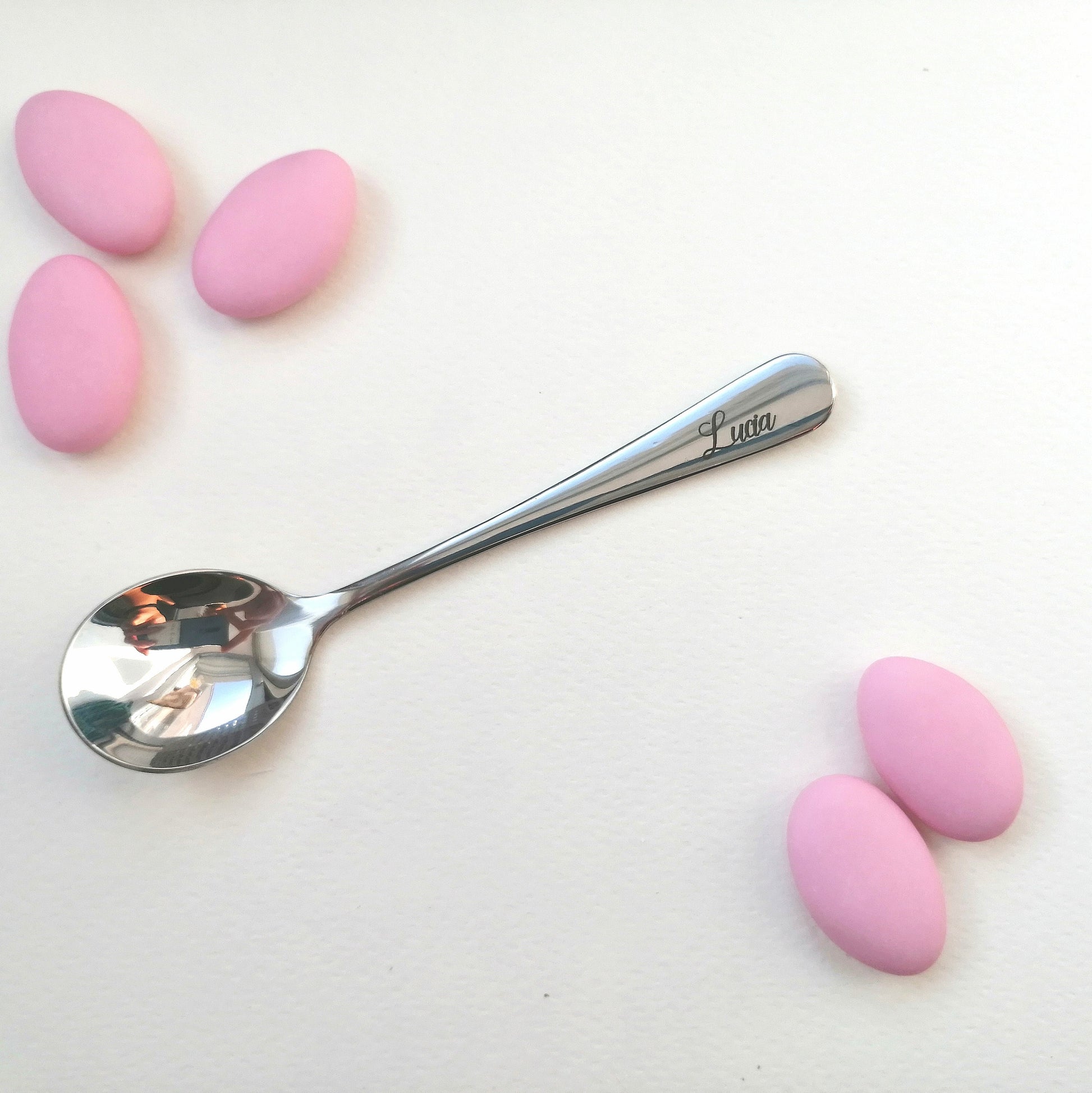 Personalized spoon with laser engraved name in steel, Baptism favor for baby girl
