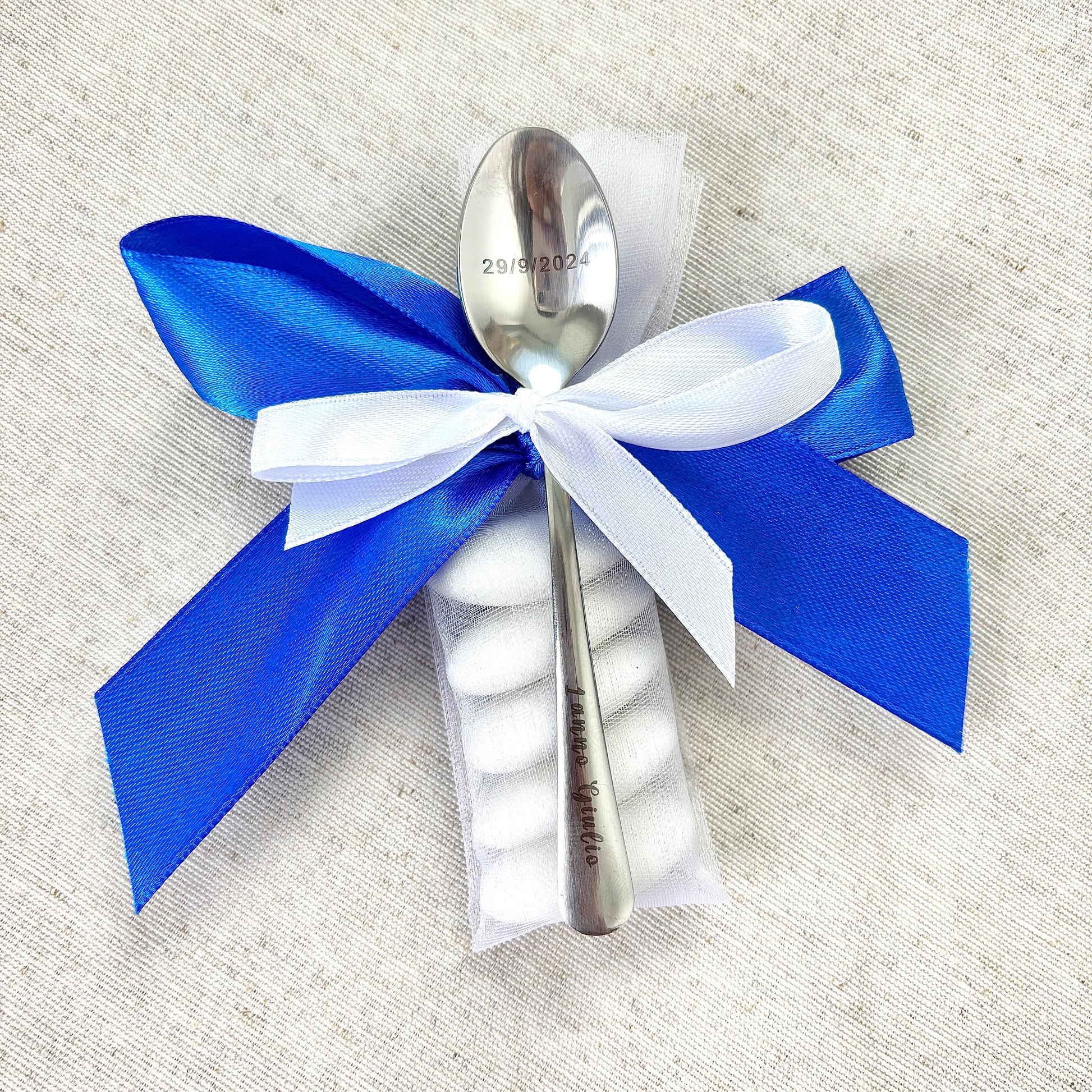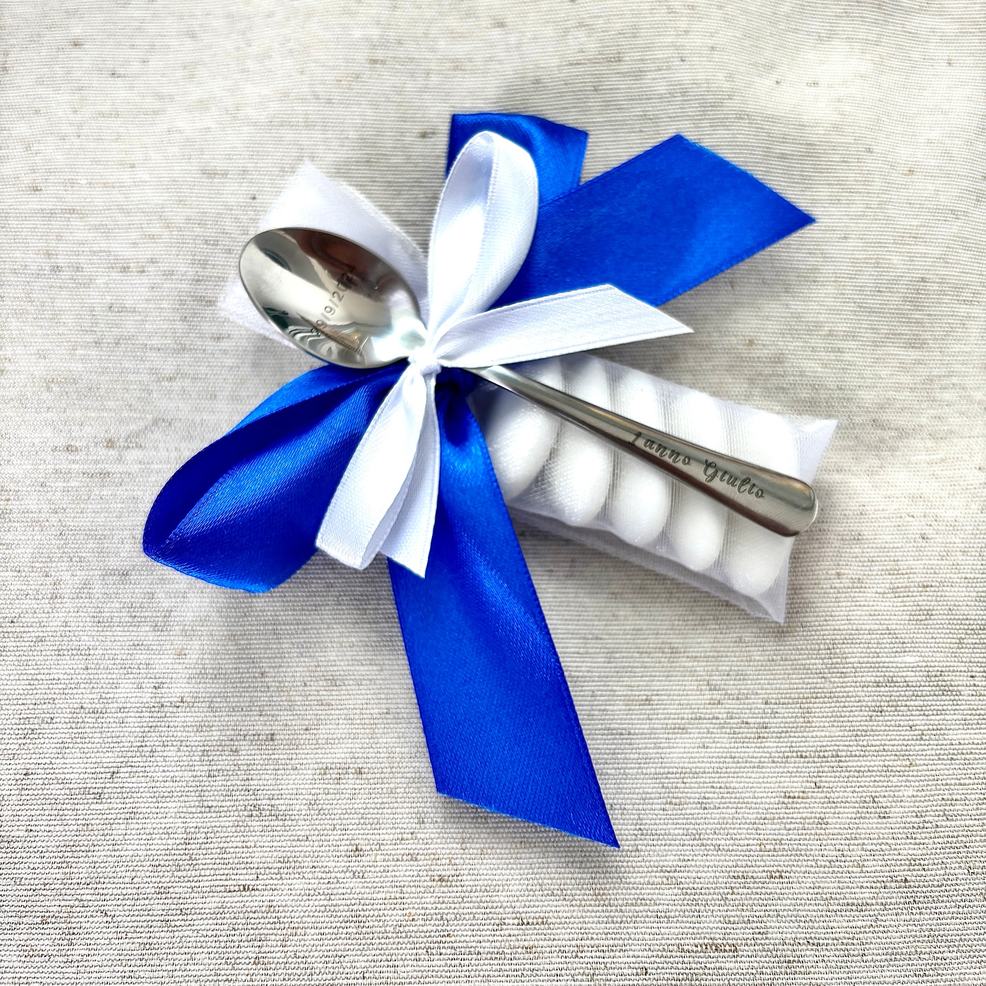 If you have chosen the "packaged" option, based on the name chosen for the engraving, the packaging will be made with pink or light blue ribbon and with the 5 corresponding sugared almonds.