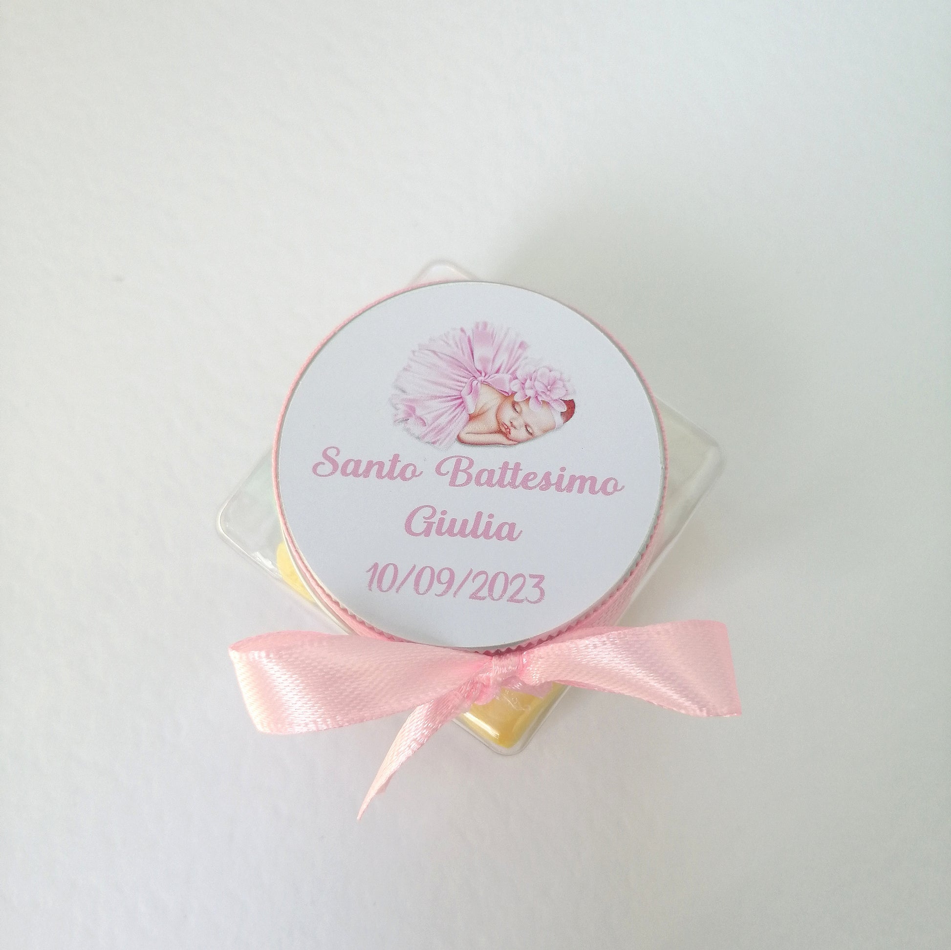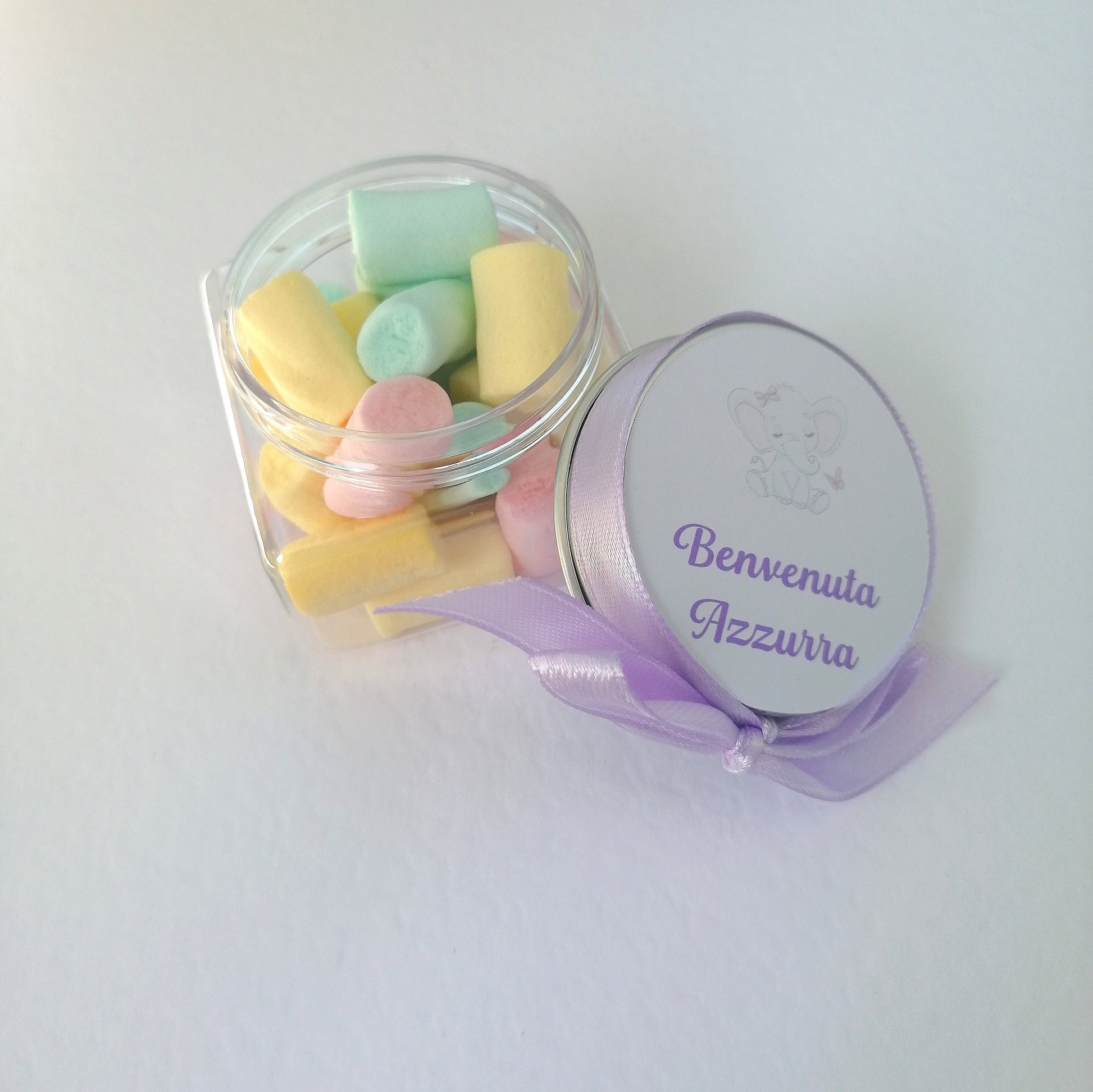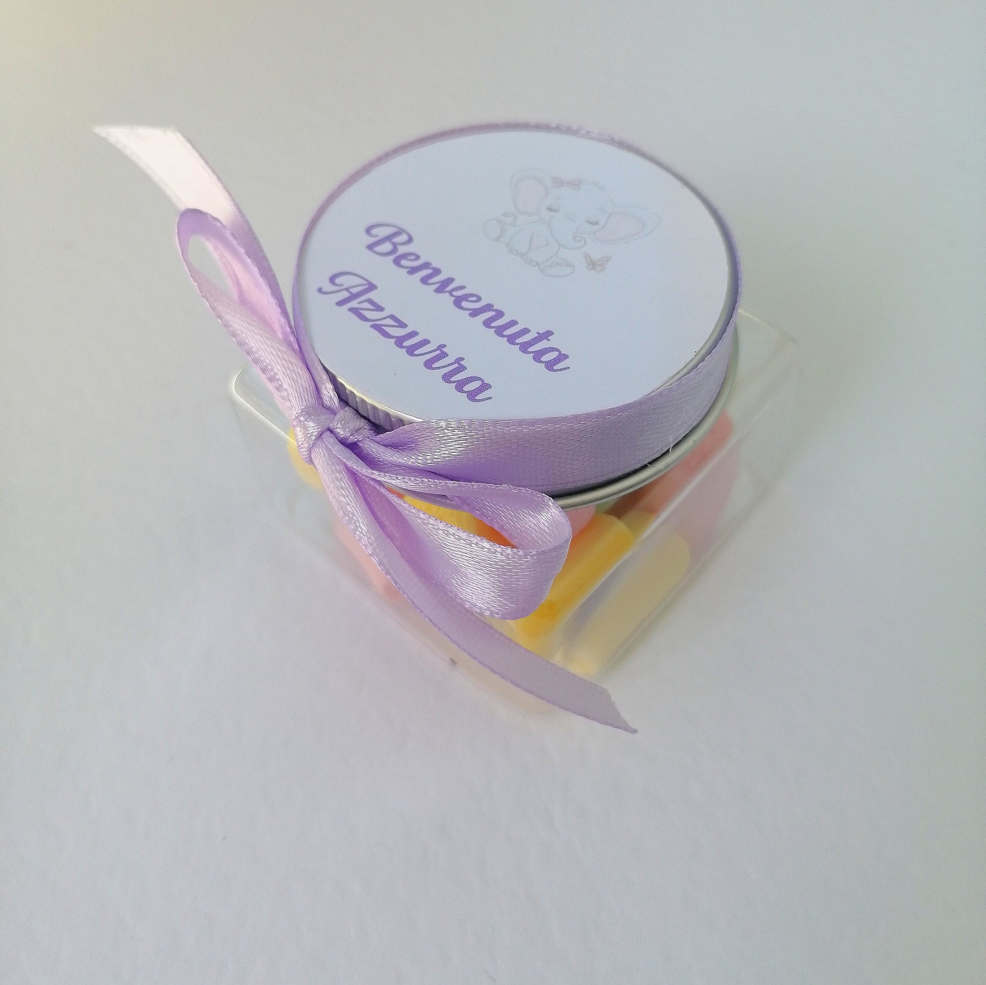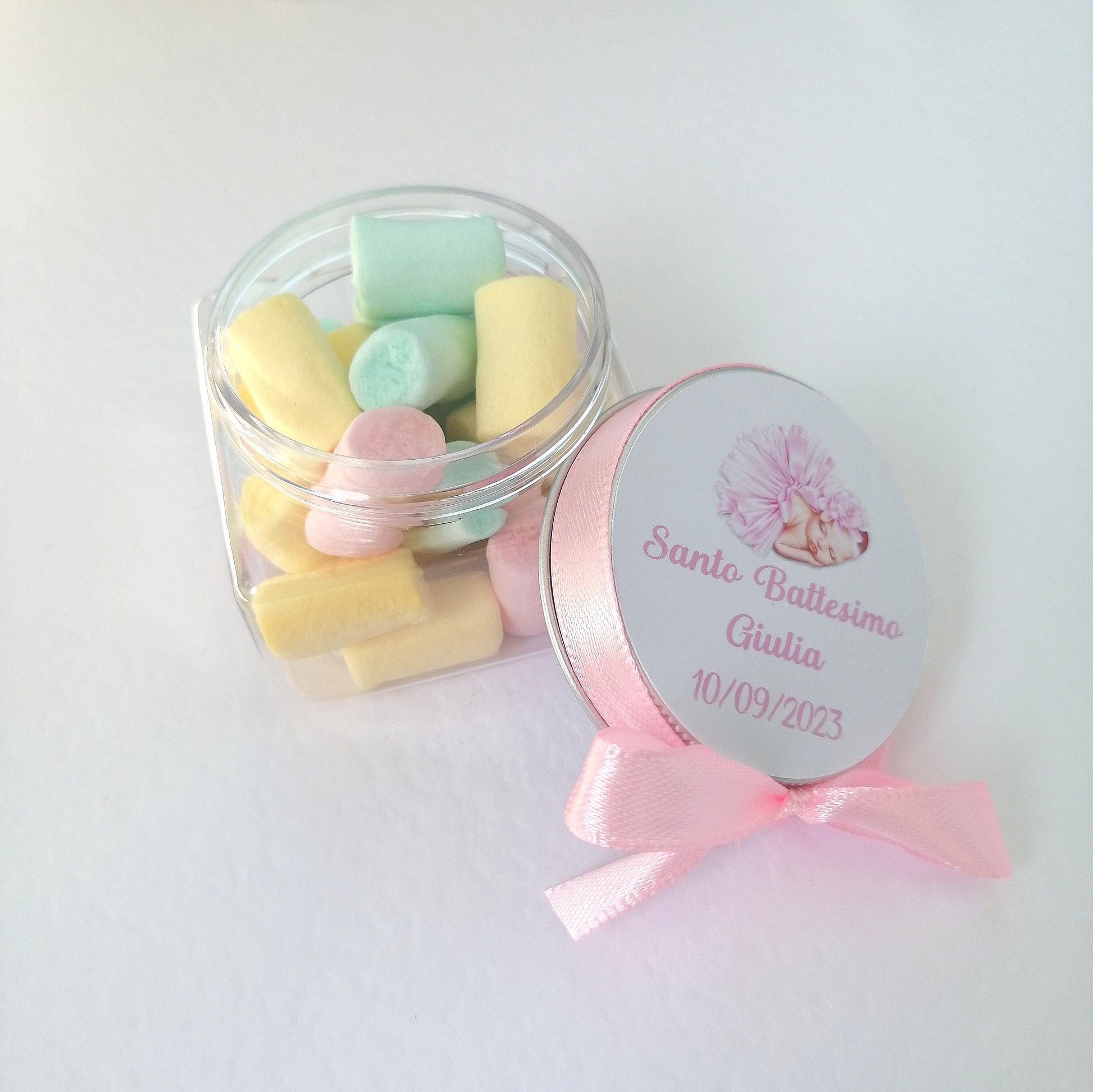 Plexiglass confetti holder with Marshmallow with customizable label 5cm x 5cm Birth Baptism Birthday