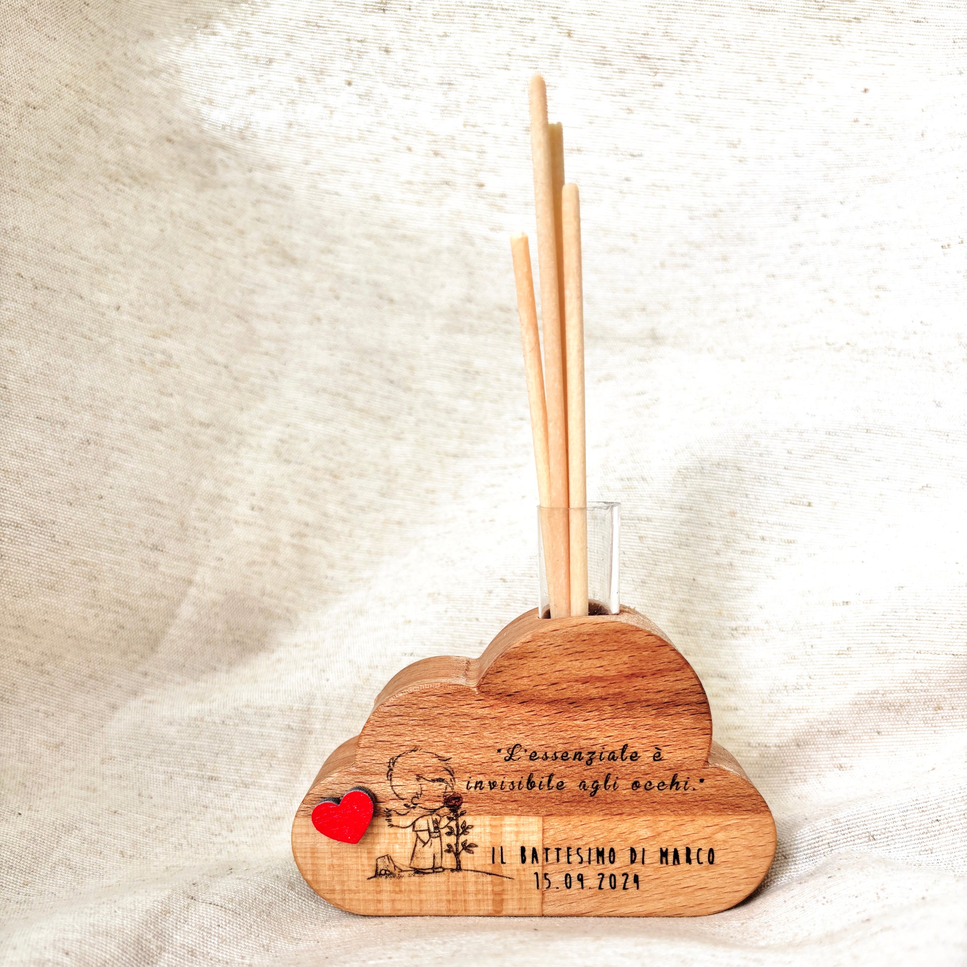 Beech wood room fragrance diffuser in the shape of a cloud with customizable LITTLE PRINCE engraving