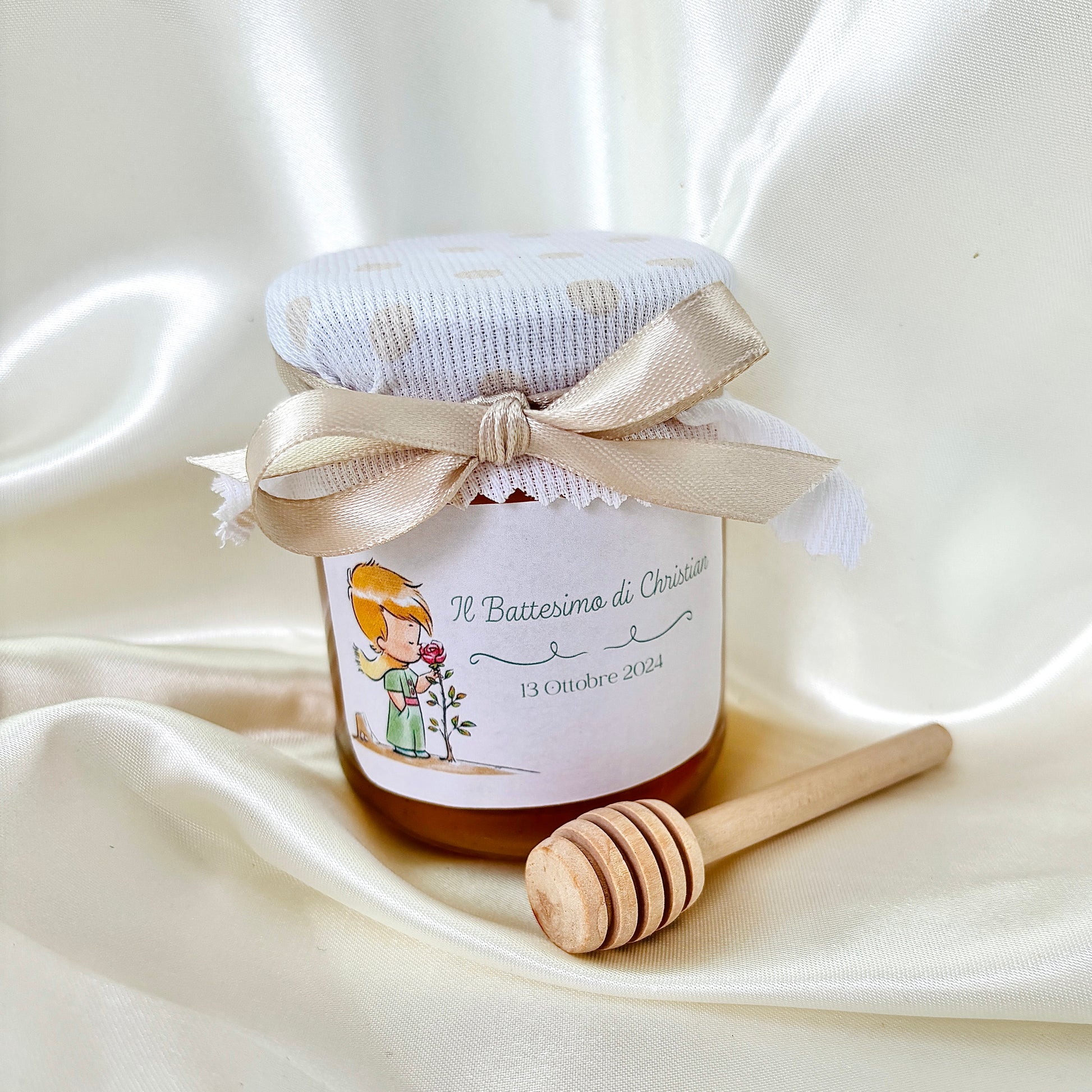 Coffret en Bois Petit Prince Thème Baptême Pot de Miel de Fleurs Sauvages - Acacia - Châtaignier Artisan 250gr
